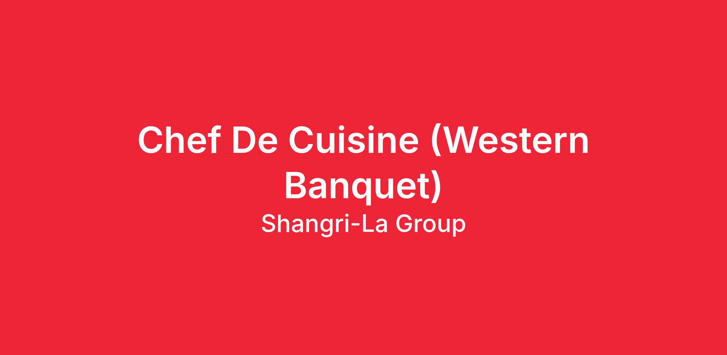 We are looking for a Chef De Cuisine (Western Banquet) to join our team!